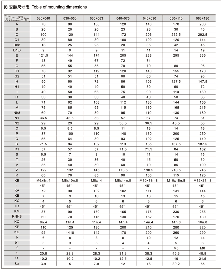 用戶有特殊要求時(shí),可根據(jù)實(shí)際需要選擇025、030、040、050、063、075、090、105、110、130作為組合單元另行組合