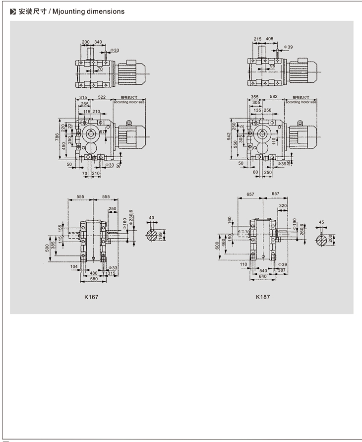 6、經(jīng)過精密加工,構(gòu)成了斜齒輪、傘齒輪、錐齒輪傳動(dòng)總成的減速機(jī)配置各種類電機(jī),形成機(jī)電一體化,完全保證了減速機(jī)產(chǎn)品使用質(zhì)量特征。