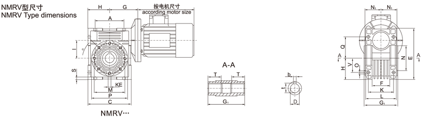RV系列蝸輪減速機安裝尺寸及附加安裝尺寸表