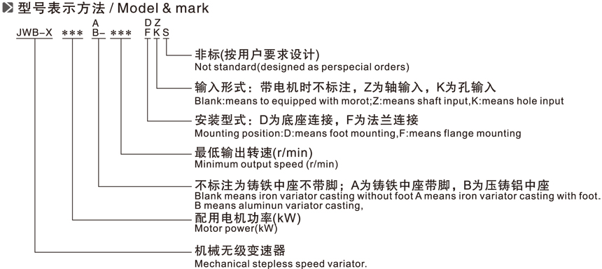 JWB-X系列無級(jí)變速機(jī)型號(hào)表示方法